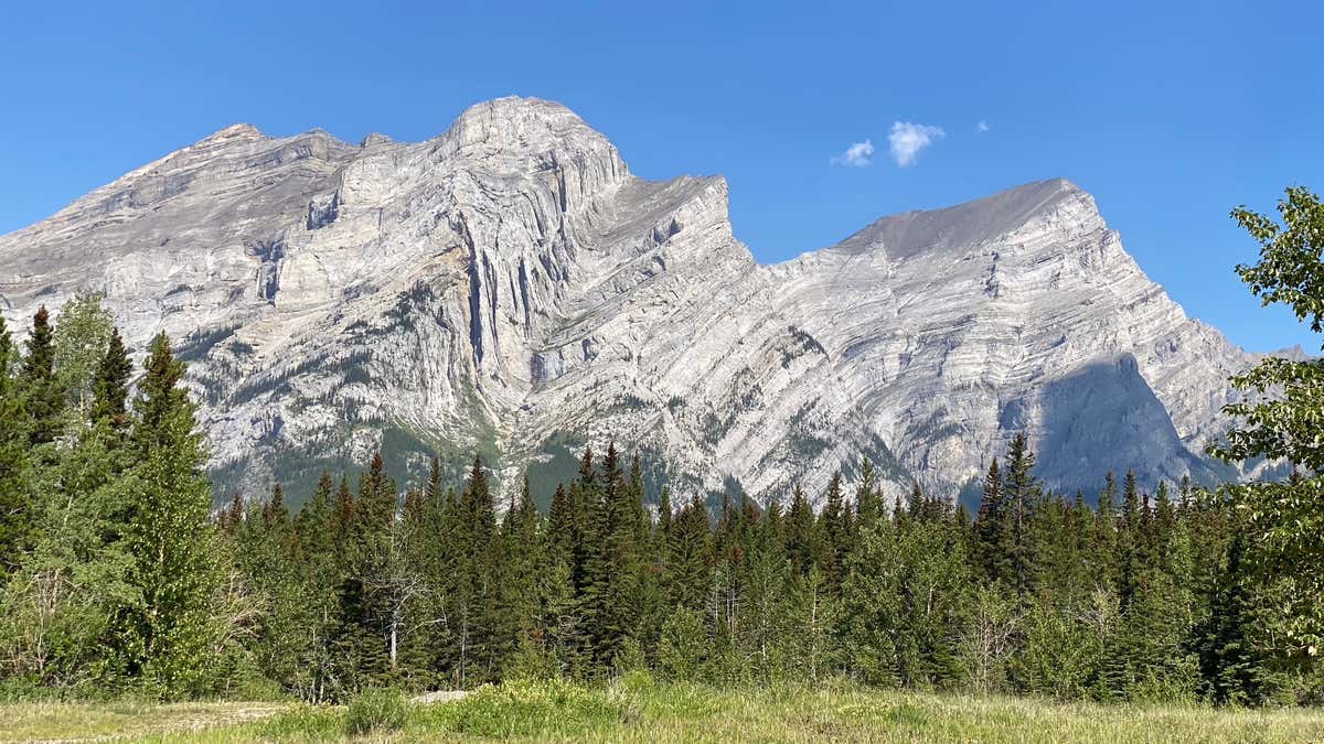 Afternoon stops include striking views of Yamnuska Mountain, showing the 505-million-year-old Eldon Formation thrust over the much younger Belly River Formation by the McConnell Thrust, as well as exposures of the 70-million-year-old Cardium Formation with unusual sedimentary features and excellent fossils preserving the trails and burrows of animals. A short final leg takes the tour to the overnight stop in Banff, nestled in a stunning setting amid the mountains.