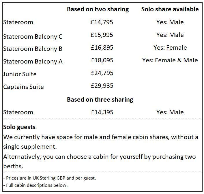 From £14,395 per person (approximately US$18,379, AU$28,499)